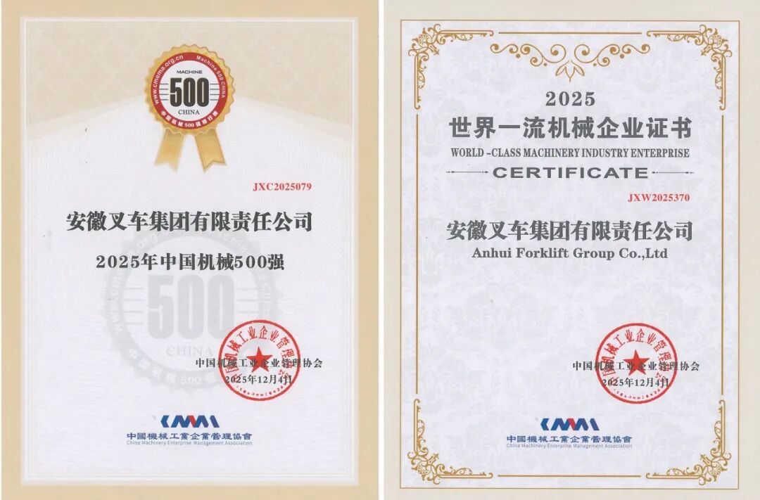 近期,國(guó)家及省市各級(jí)企業(yè)聯(lián)合會(huì)、企業(yè)家協(xié)會(huì)陸續(xù)發(fā)布年度企業(yè)榜單。憑借穩(wěn)健的經(jīng)營(yíng)業(yè)績(jī)與卓越的實(shí)踐表現(xiàn),安徽叉車集團(tuán)成功入選“2025中國(guó)制造業(yè)企業(yè)500強(qiáng)”、“2025安徽企業(yè)100強(qiáng)”、“2025安徽制造業(yè)100強(qiáng)”、“2025安徽百?gòu)?qiáng)企業(yè)戰(zhàn)略新興業(yè)務(wù)營(yíng)收30強(qiáng)”及“合肥市50強(qiáng)”等多項(xiàng)權(quán)威榜單。尤為值得一提的是,公司今年首次躋身“中國(guó)制造業(yè)企業(yè)500強(qiáng)”,排名第489位;同時(shí),在“安徽企業(yè)100強(qiáng)”和“合肥市50強(qiáng)”中的排名也實(shí)現(xiàn)穩(wěn)步提升,分別較“十三五”末提升7位和5位。多項(xiàng)榮譽(yù)的取得,是公司高質(zhì)量發(fā)展的生動(dòng)體現(xiàn)。